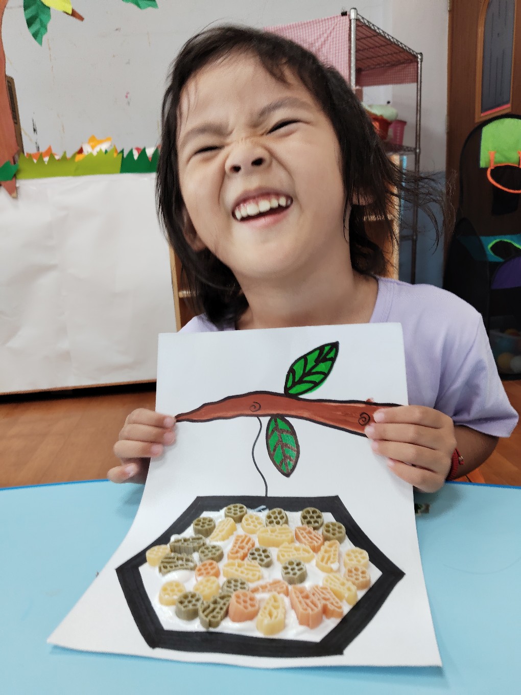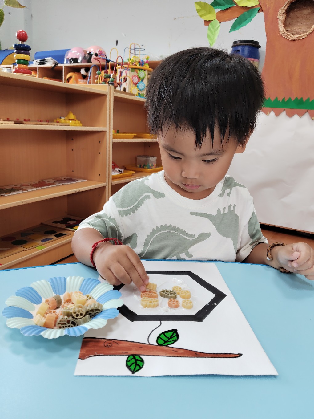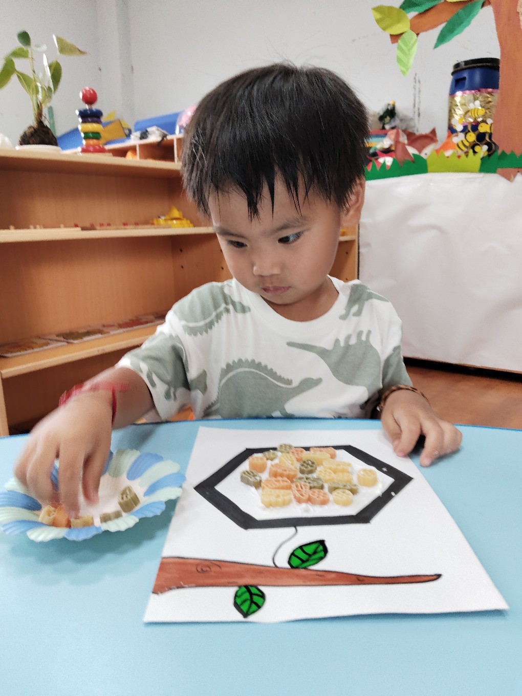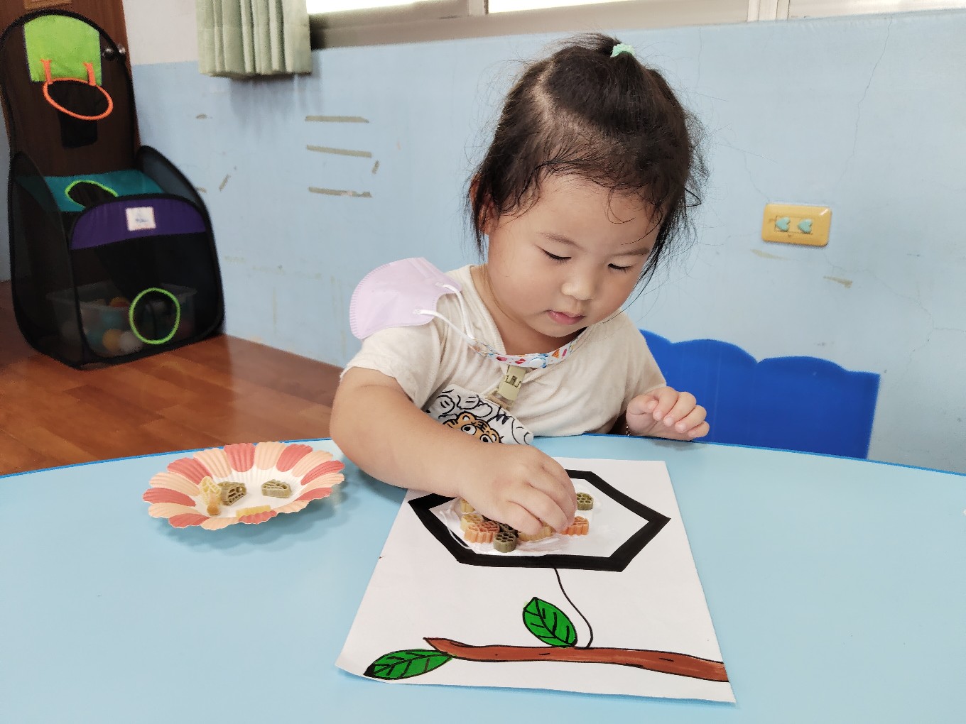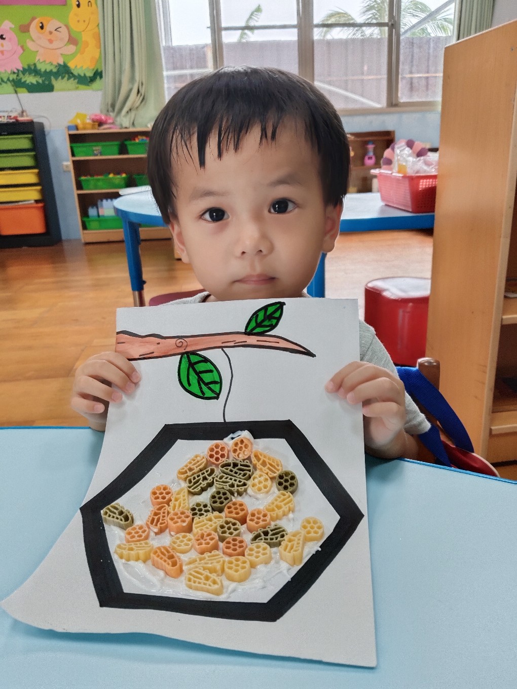 用通心麵創作蜜蜂的蜂巢