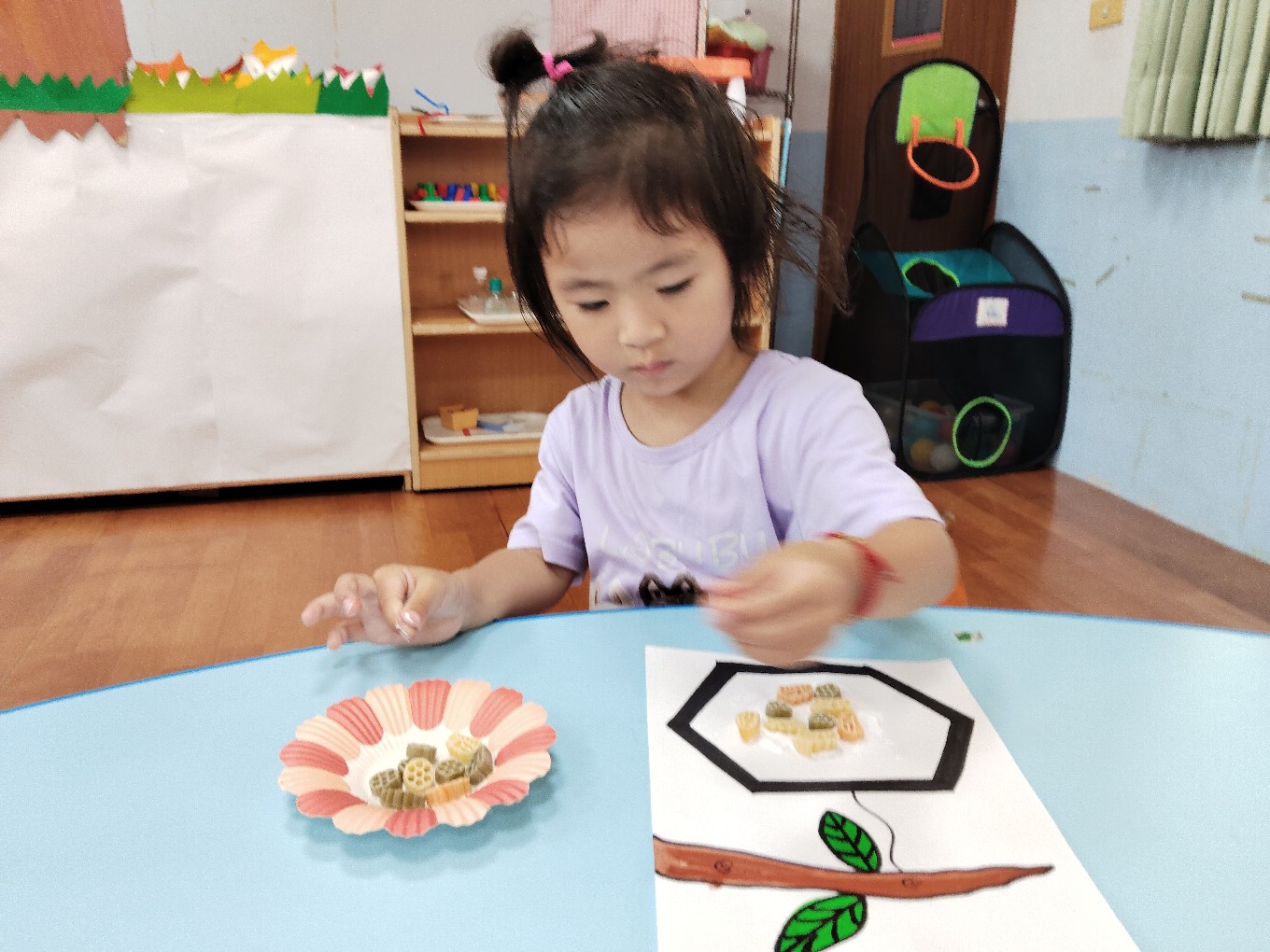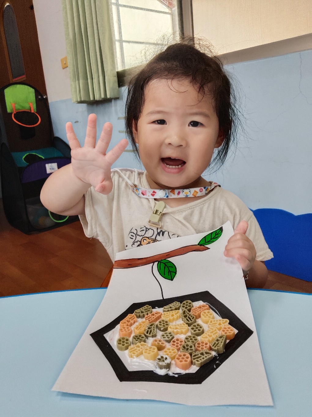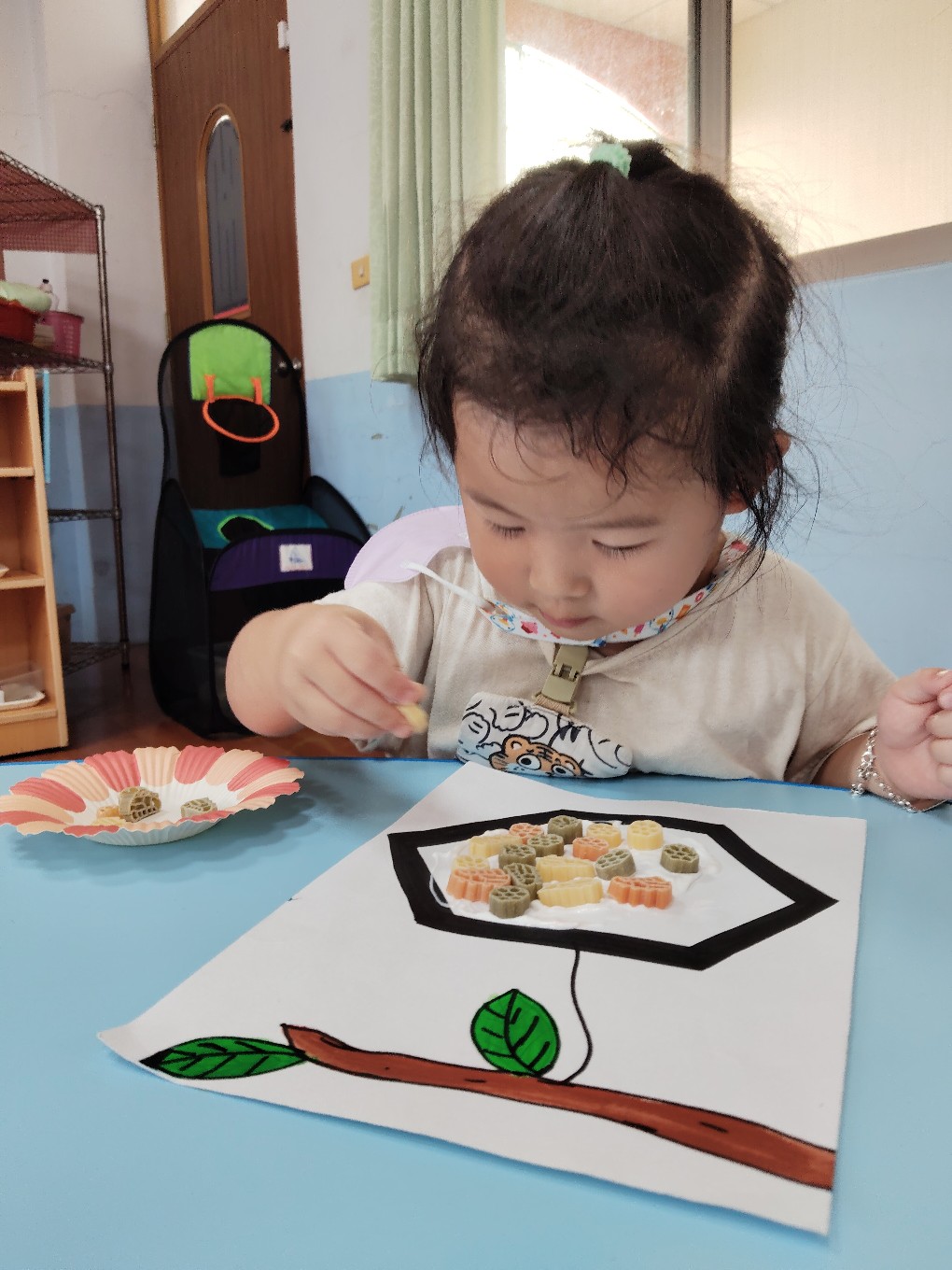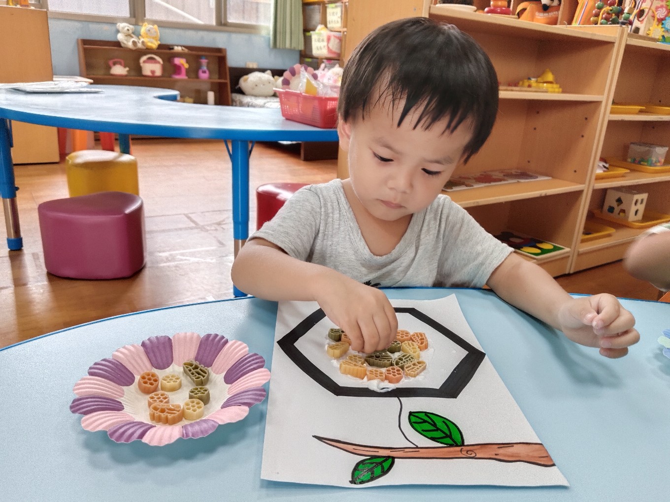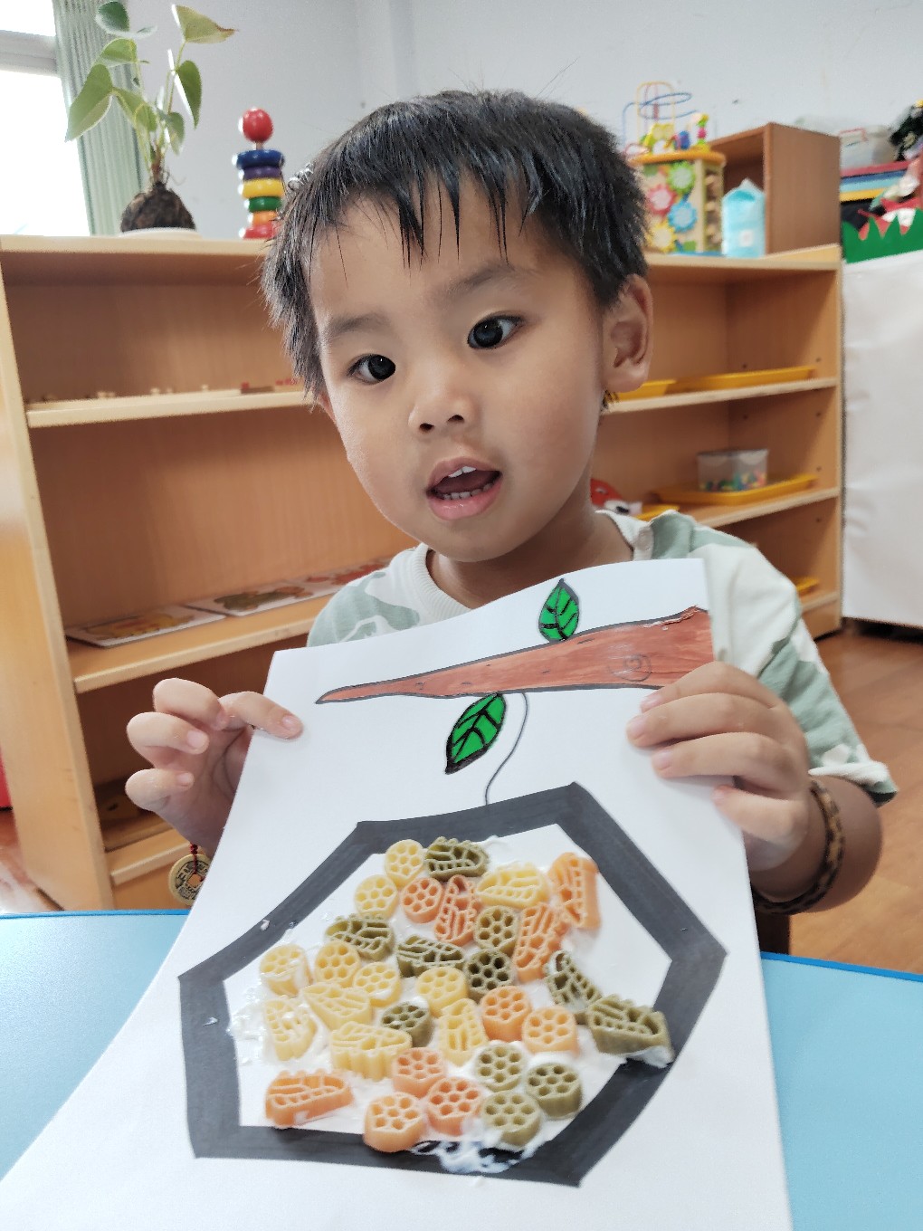 用通心麵創作蜜蜂的蜂巢