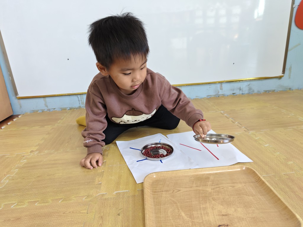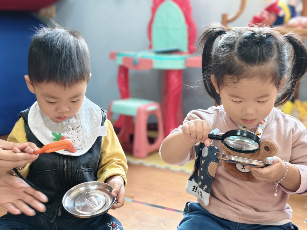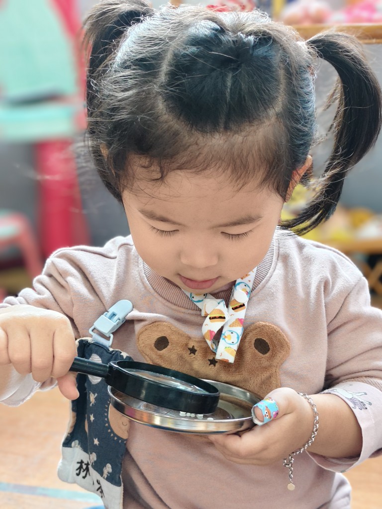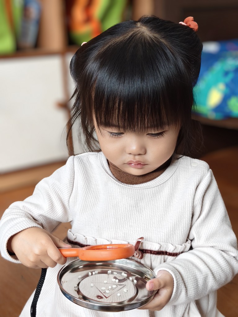 用放大鏡觀察米粒