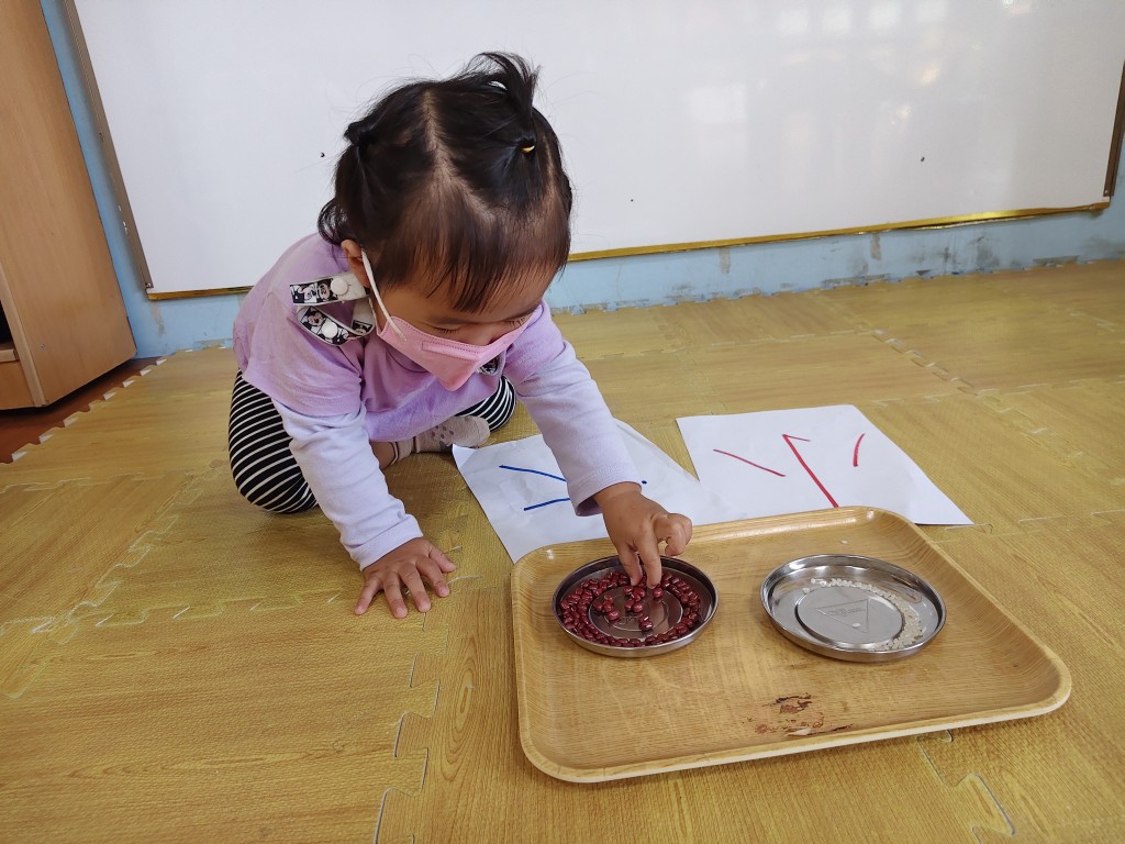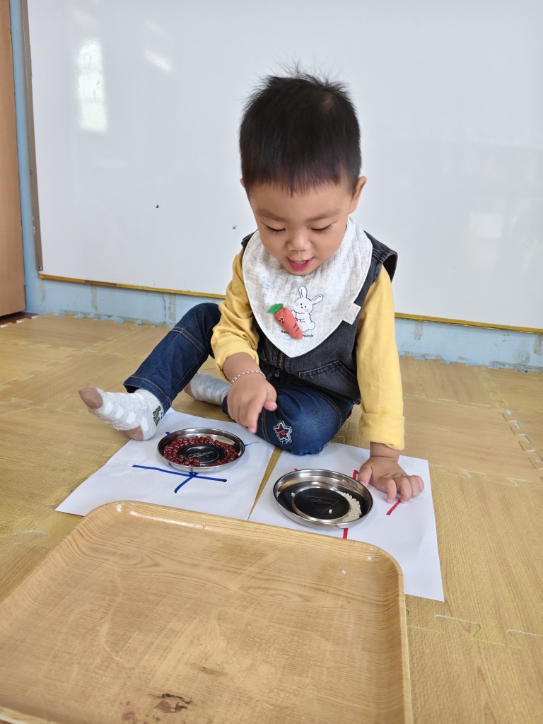 比較米粒和紅豆大小